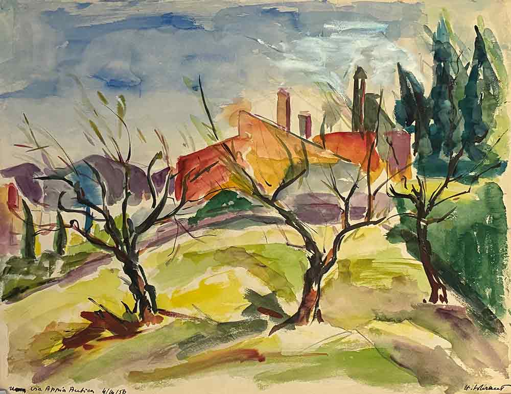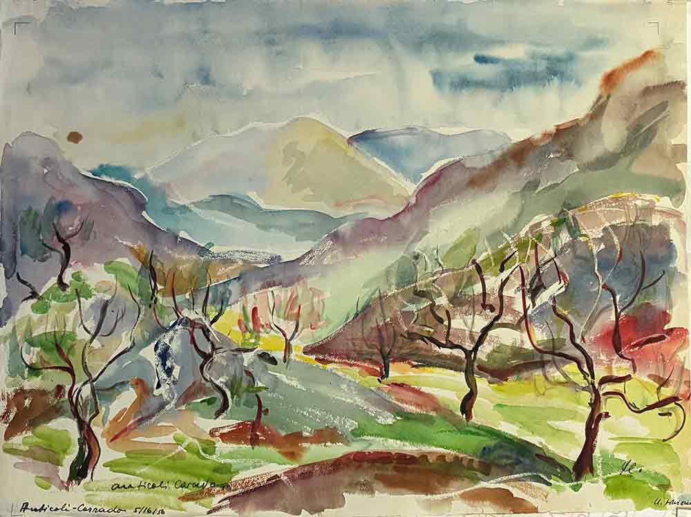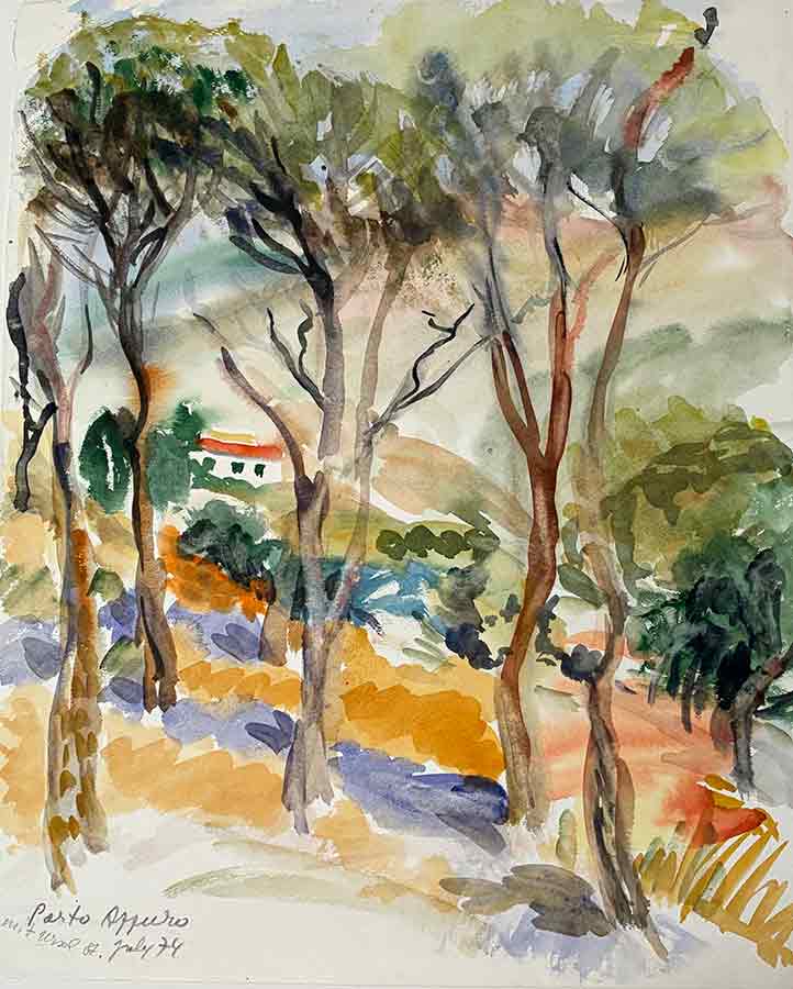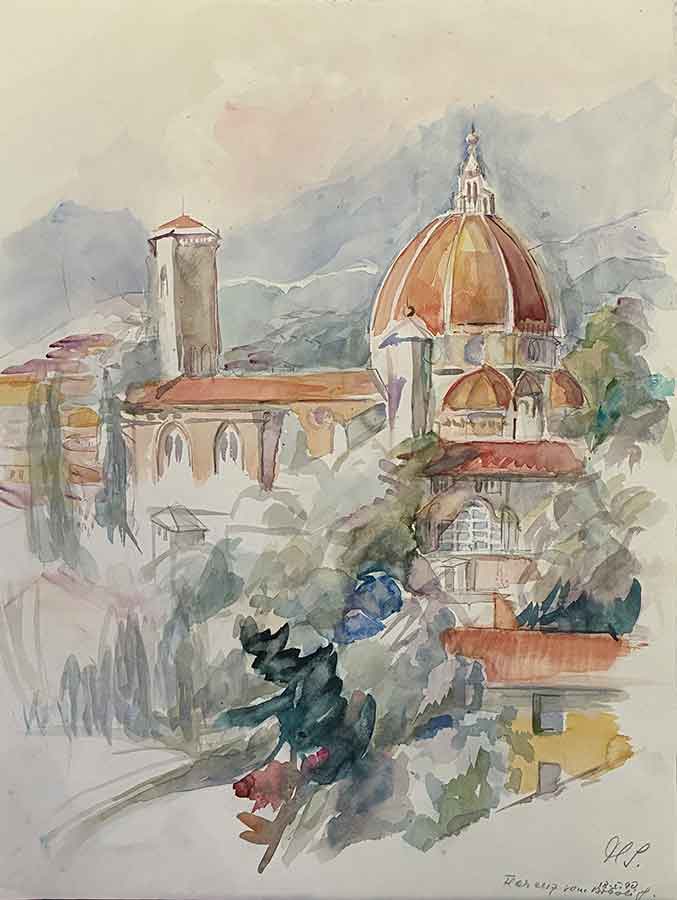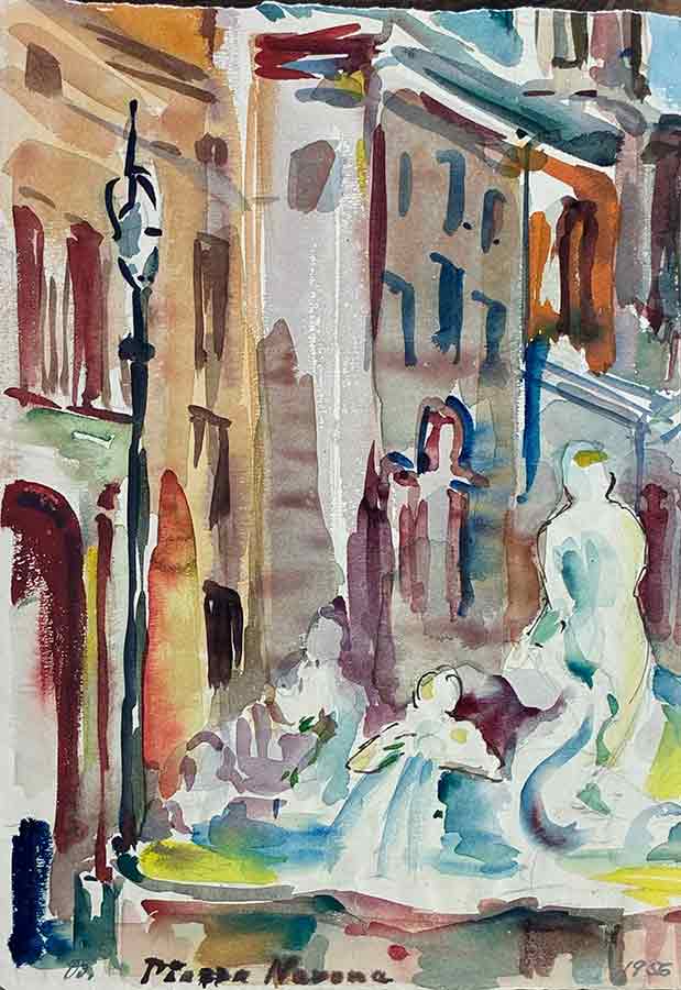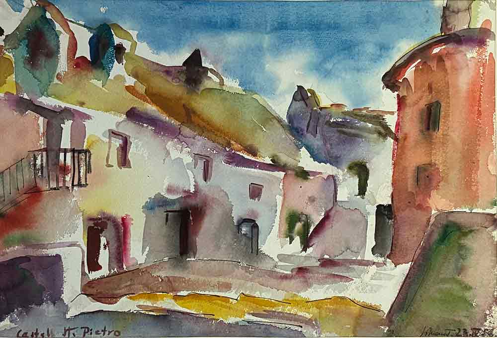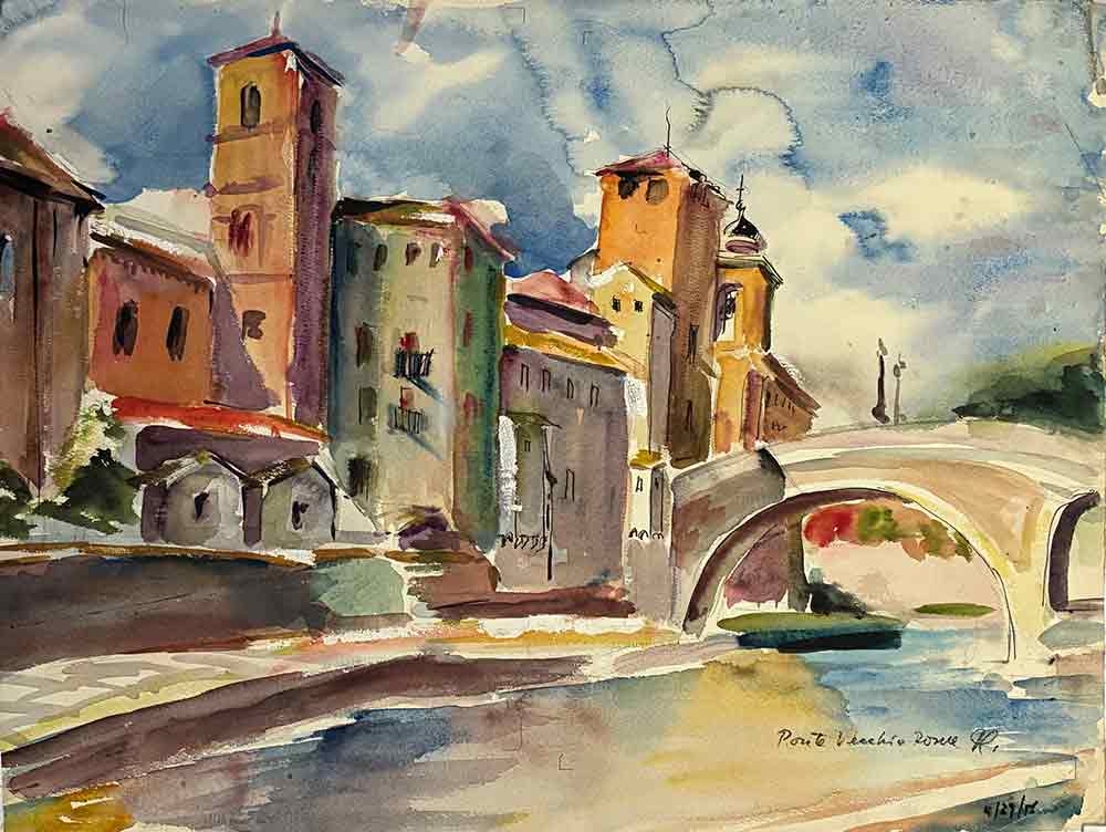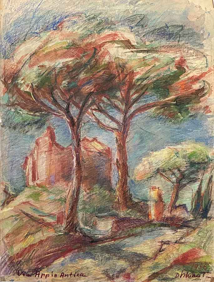 Auf einem Schiff am Weg von Genua nach New York lernt Dita einen charmanten Ingenieur kennen. Francesco Baldo, Spezialist für Wasserkraftwerke der Edison Company Milano. Es entwickelt sich eine mehrjährige Romanze, eine Long Distance Love Affair. Er beruflich viel unterwegs, sie von den familiären Pflichten entbunden. Was tun? Sie geht nach Rom und schreibt sich ein in die Akademie der schönen Künste. Dieses schöne Land mit seinen freundlichen, gut gelaunten Menschen, das Meer, die Sonne sind ihr schnell ans Herz gewachsen. Viele Landschaftsbilder entstehen, Olivenhaine in kräftigen Farben, der Hafen, das Meer.