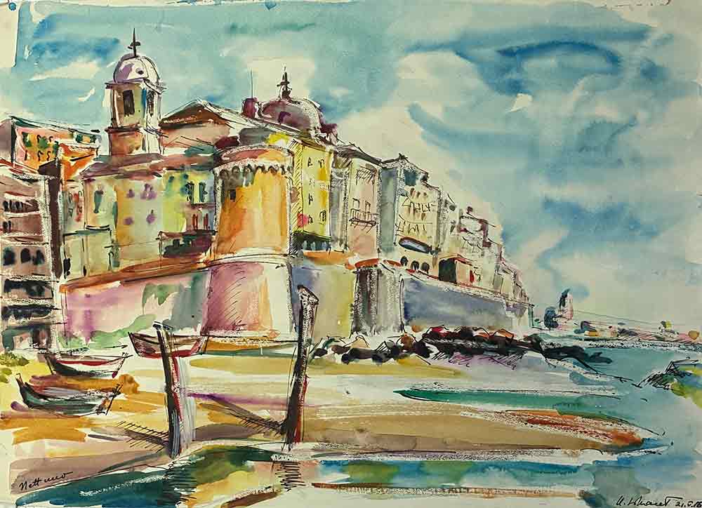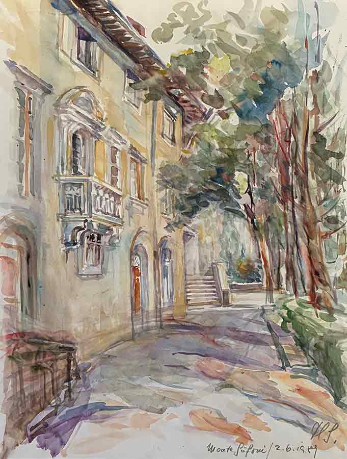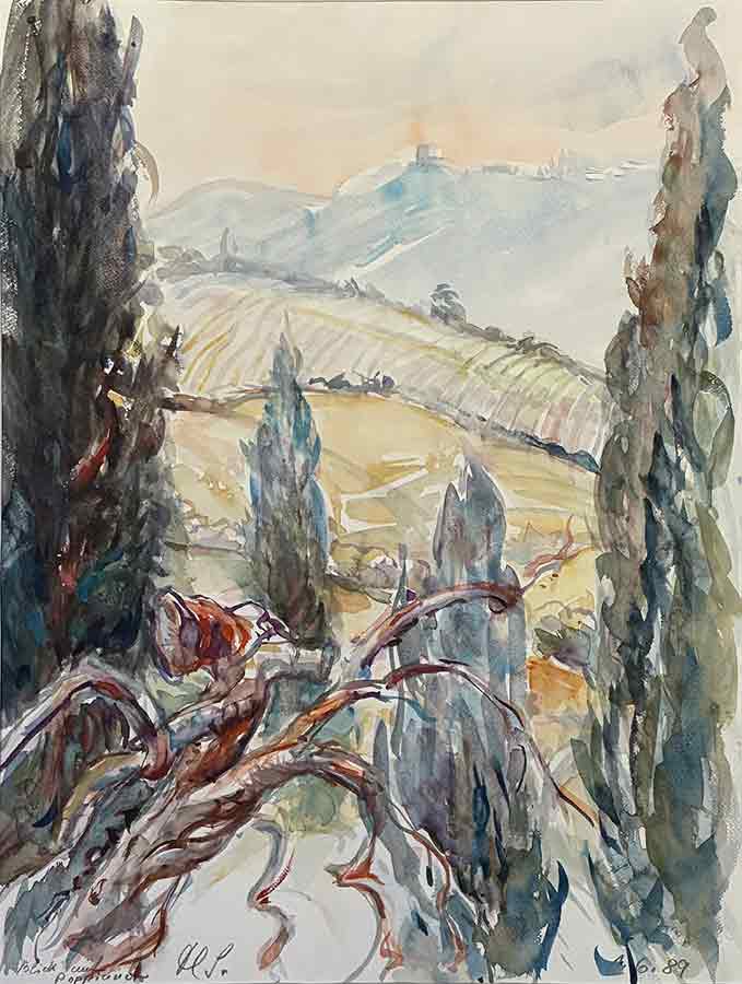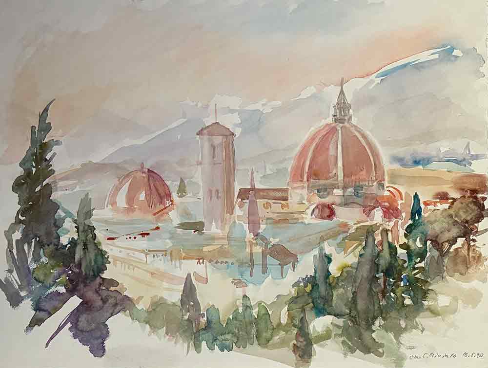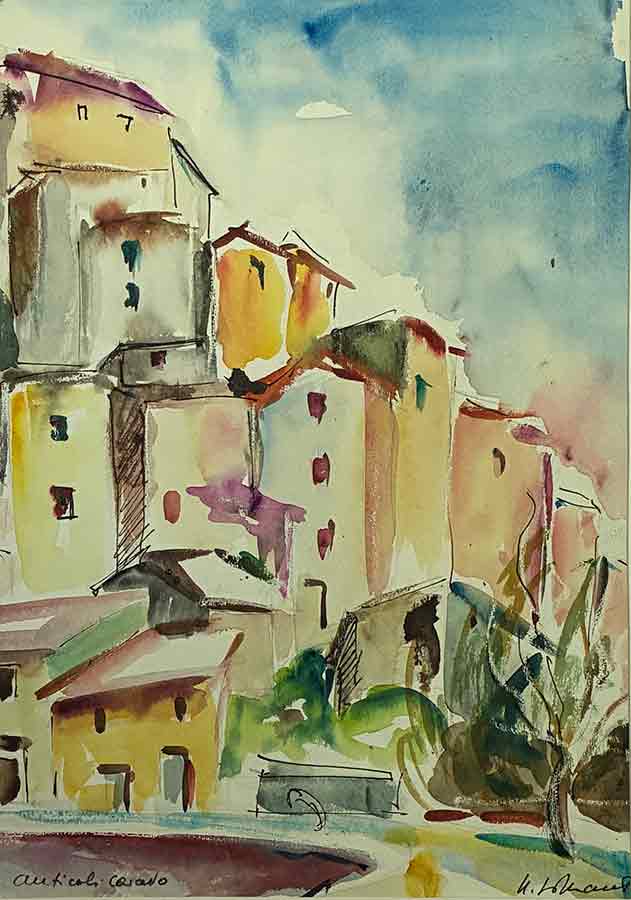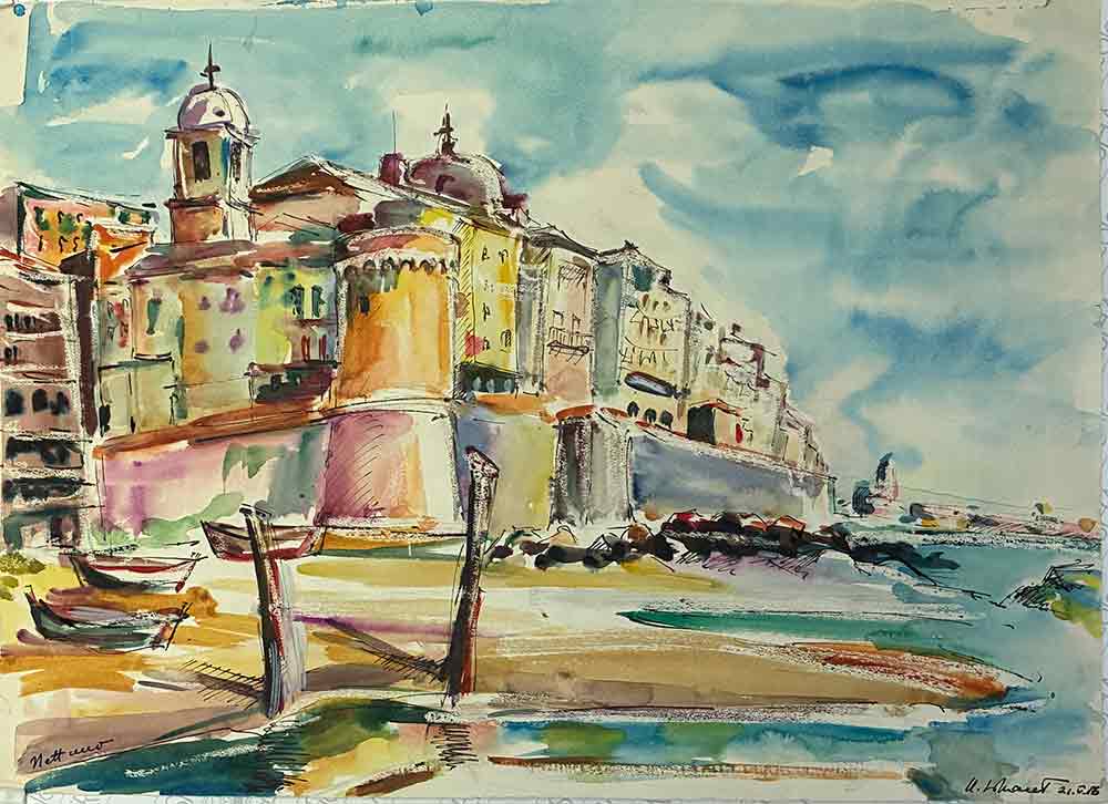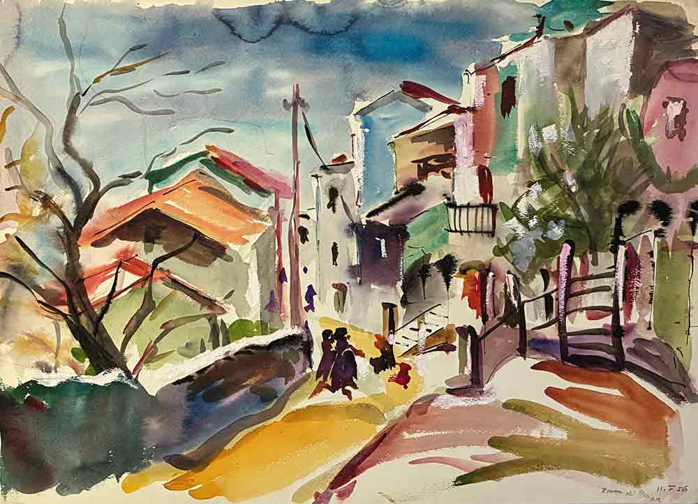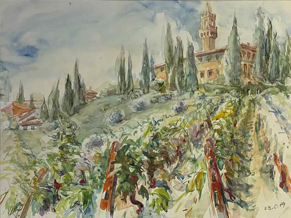 Auf einem Schiff am Weg von Genua nach New York lernt Dita einen charmanten Ingenieur kennen. Francesco Baldo, Spezialist für Wasserkraftwerke der Edison Company Milano. Es entwickelt sich eine mehrjährige Romanze, eine Long Distance Love Affair. Er beruflich viel unterwegs, sie von den familiären Pflichten entbunden. Was tun? Sie geht nach Rom und schreibt sich ein in die Akademie der schönen Künste. Dieses schöne Land mit seinen freundlichen, gut gelaunten Menschen, das Meer, die Sonne sind ihr schnell ans Herz gewachsen. Viele Landschaftsbilder entstehen, Olivenhaine in kräftigen Farben, der Hafen, das Meer.