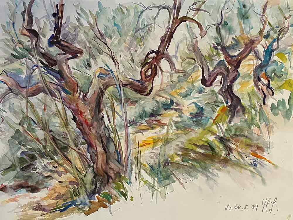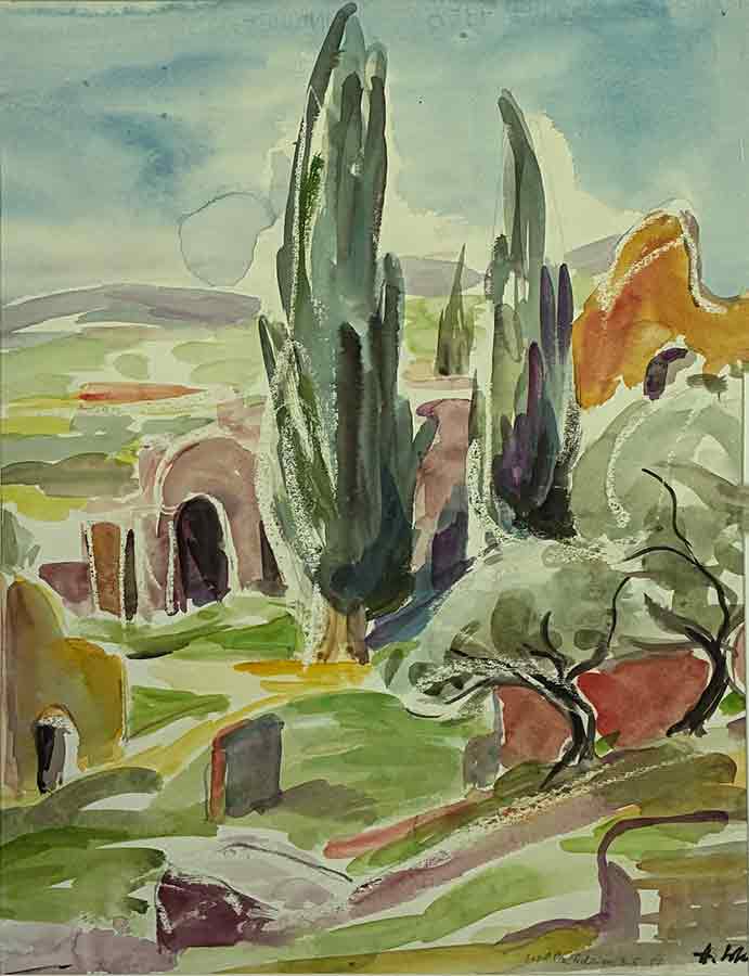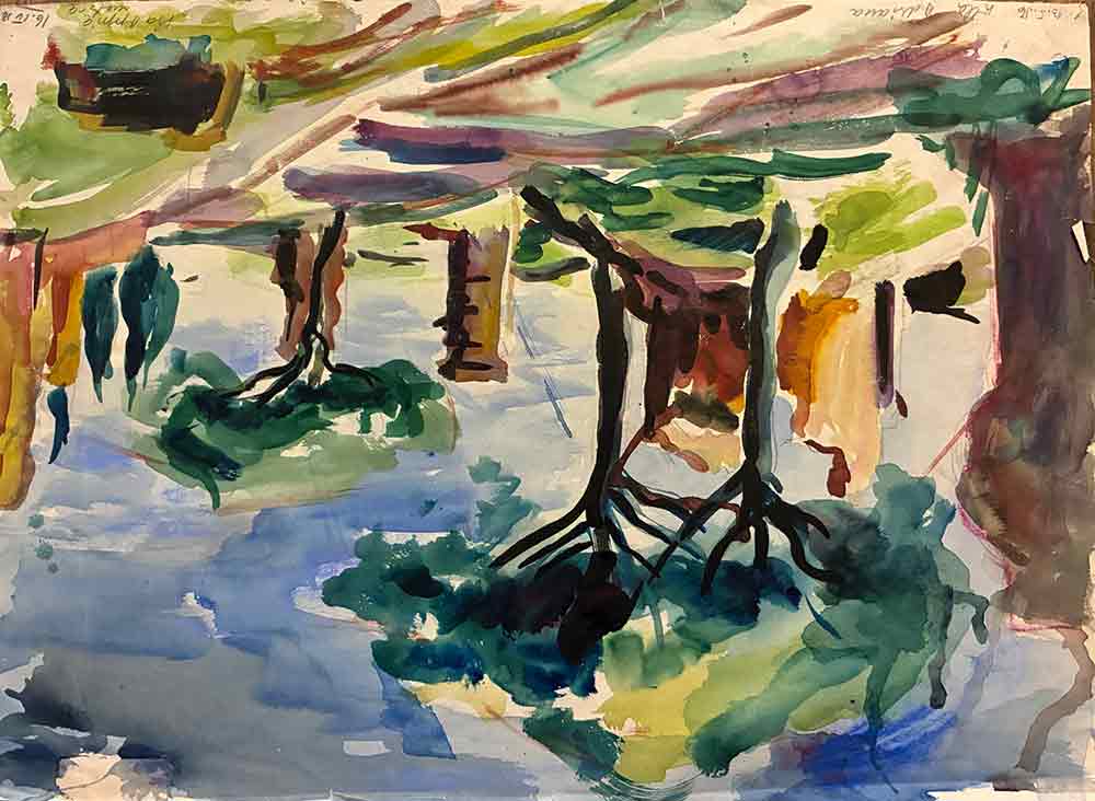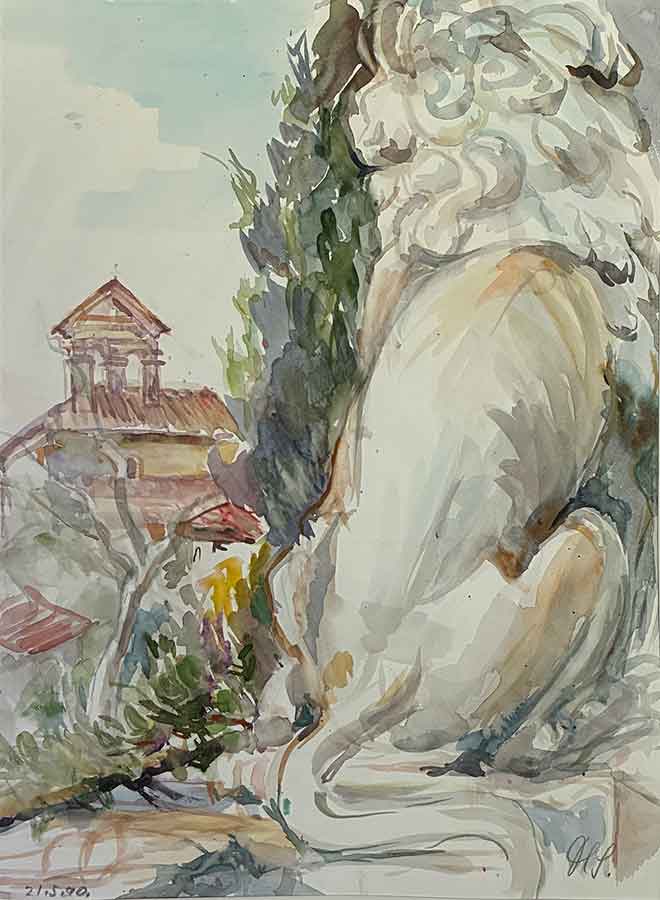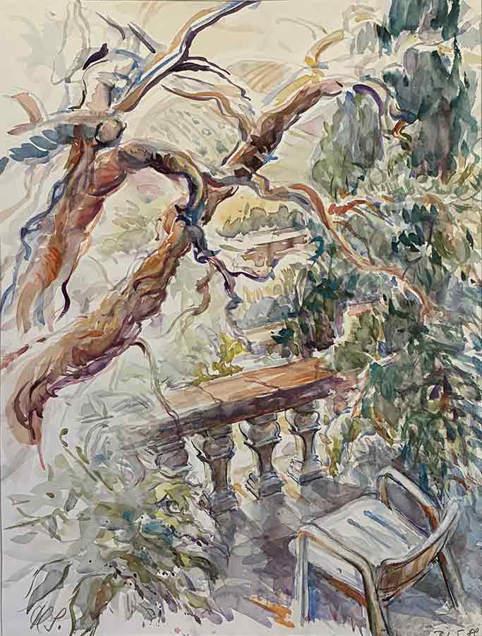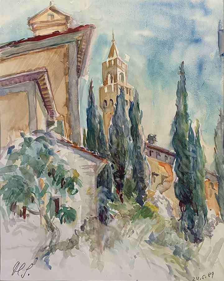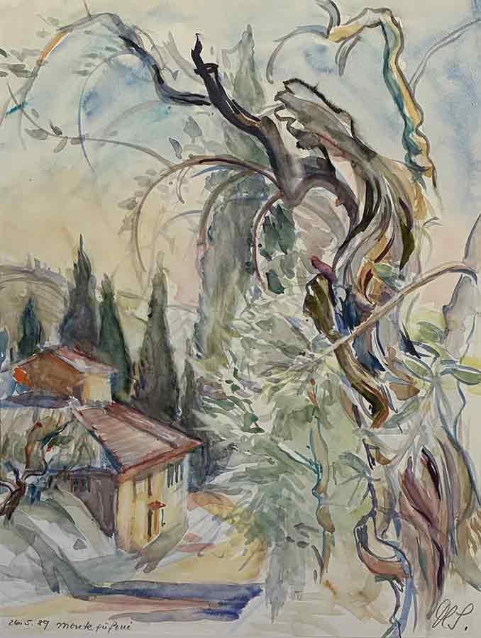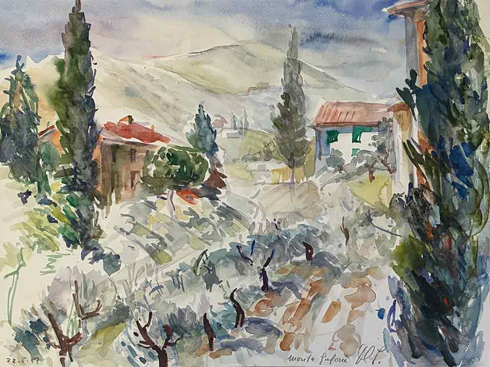 Auf einem Schiff am Weg von Genua nach New York lernt Dita einen charmanten Ingenieur kennen. Francesco Baldo, Spezialist für Wasserkraftwerke der Edison Company Milano. Es entwickelt sich eine mehrjährige Romanze, eine Long Distance Love Affair. Er beruflich viel unterwegs, sie von den familiären Pflichten entbunden. Was tun? Sie geht nach Rom und schreibt sich ein in die Akademie der schönen Künste. Dieses schöne Land mit seinen freundlichen, gut gelaunten Menschen, das Meer, die Sonne sind ihr schnell ans Herz gewachsen. Viele Landschaftsbilder entstehen, Olivenhaine in kräftigen Farben, der Hafen, das Meer.